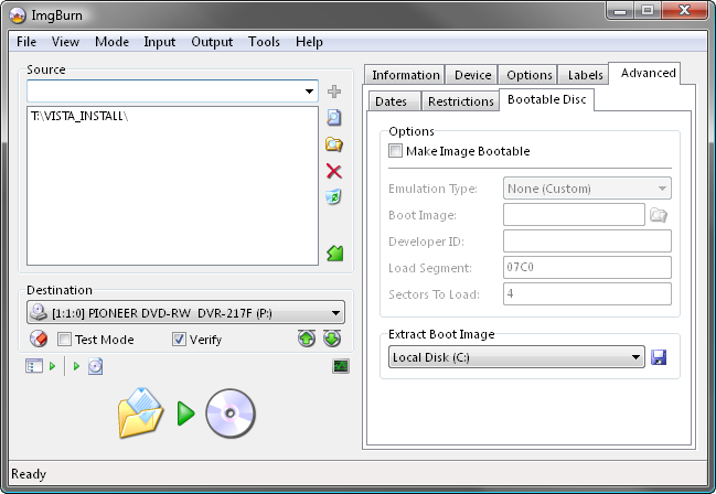 - Point the ‘Boot Image’ to the ‘etfsboot.com‘ file within the ‘boot’ folder in your source folder. (In my case, its “F:NSCD_ROMBOOTETFSBOOT.COM“. It will differ for you.