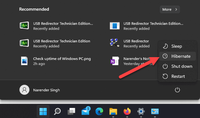 Now, simply use the Hibernate option in power menu whenever you want to put the computer into hibernation.