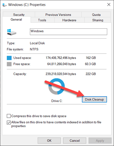 3. Click on Disk Cleanup to open the Windows Disk Cleanup utility.