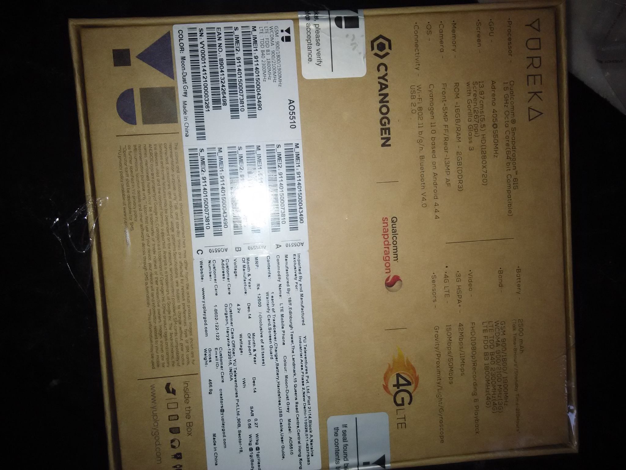 So, the SAR value of Yureka is 0.4 W/kg and it is well in limits with the 1.6 W/kg highest limit set by the Indian authorities.