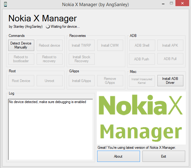 5. Make sure your Nokia X is detected by the Nokia X Manager.