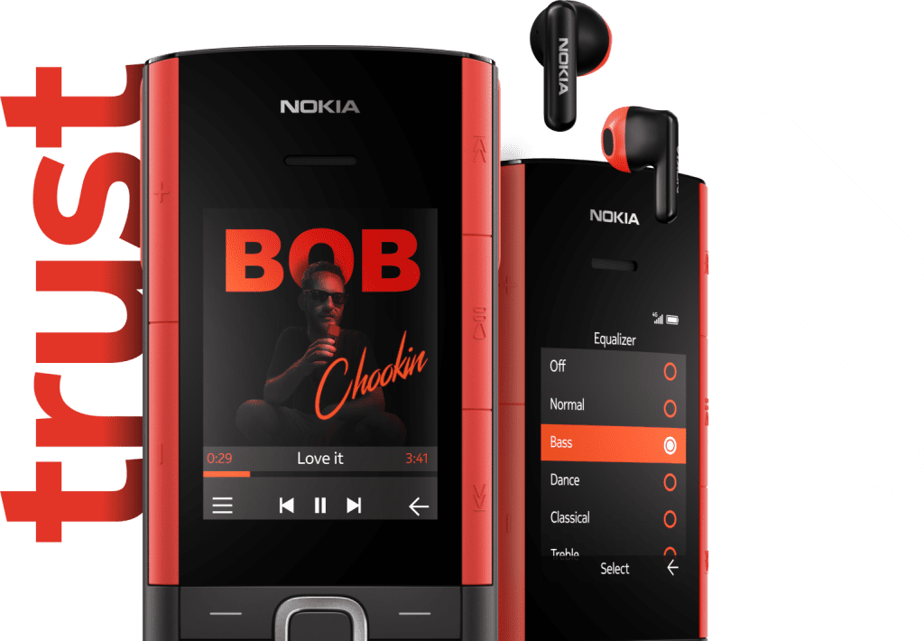 And when you’re alone on your journey, there are built-in TWS earfbuds right inside the phone. Just slide down the cover on the back and you’ll get access to fully-charged TWS for some private music and calls. The Nokia 5710 XpressAudio runs on S30+ OS and includes support for Dual-SIM, 4G VoLTE, FM Radio, and Bluetooth 5.0. It can support up to 32GB of external storage (using a MicroSD card) to store a large variety of audio files.