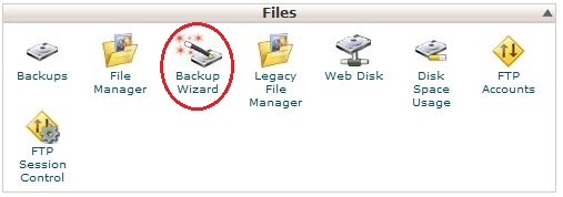 - Now, logon to the cPanel of the old host/server and select Backup Wizard found under Files menu.