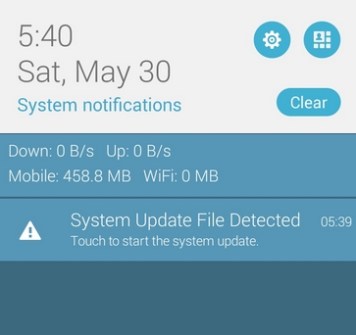 - The phone will show a System Update File Detected notification in a couple of minutes. Tap on the notification.